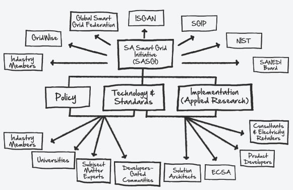 During the year 2012, SANEDI setup the South African Smart Grid Initiative (SASGI). This initiative was made-up of industry stakeholders within the Electricity Distribution Industry (EDI). Its main objectives amongst others, was to draw on industry expertise, developed a Smart Grid vision for the industry and create a platform for knowledge sharing.